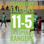 Somit konnten endlich die ersten zwei Punkte im neuen Jahr geholt werden und eine kleine Restchance auf den 4. Platz bleibt. Den belegt aktuell Floorball Mainz, dahinter stehen die Rangers. Spitzenreiter ist immer noch die TSG Erlensee, gefolgt von den Frankfurt Falcons und Floorball Griedel. Das nächste Spiel für die Rangers ist am 12.03. in Frankfurt gegen die Gastgeber. Im Hinspiel gab es gegen sie ein tolles Spiel, das jedoch leider mit 6:5 für die Falcons endete.
